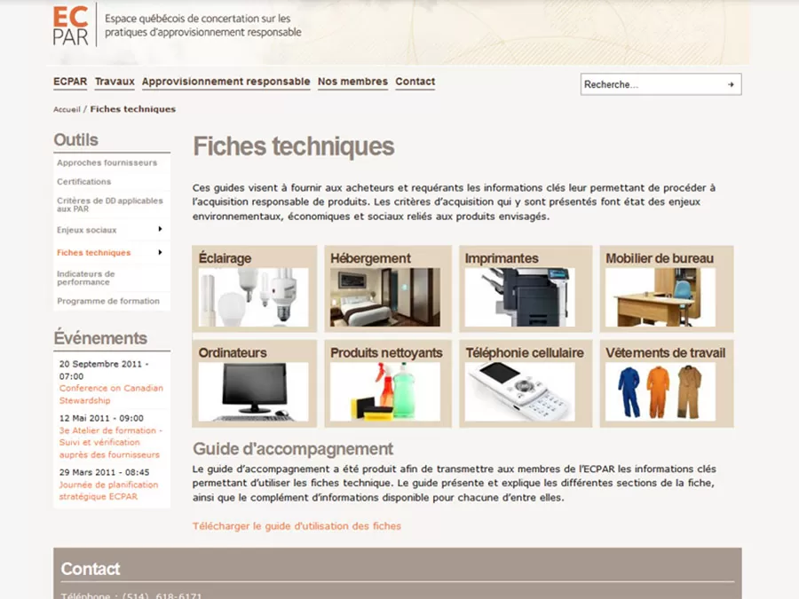 Design of the ECPAR website in collaboration with Perennia. (ECPAR is a Quebec-based working group on sustainable purchasing policies.)