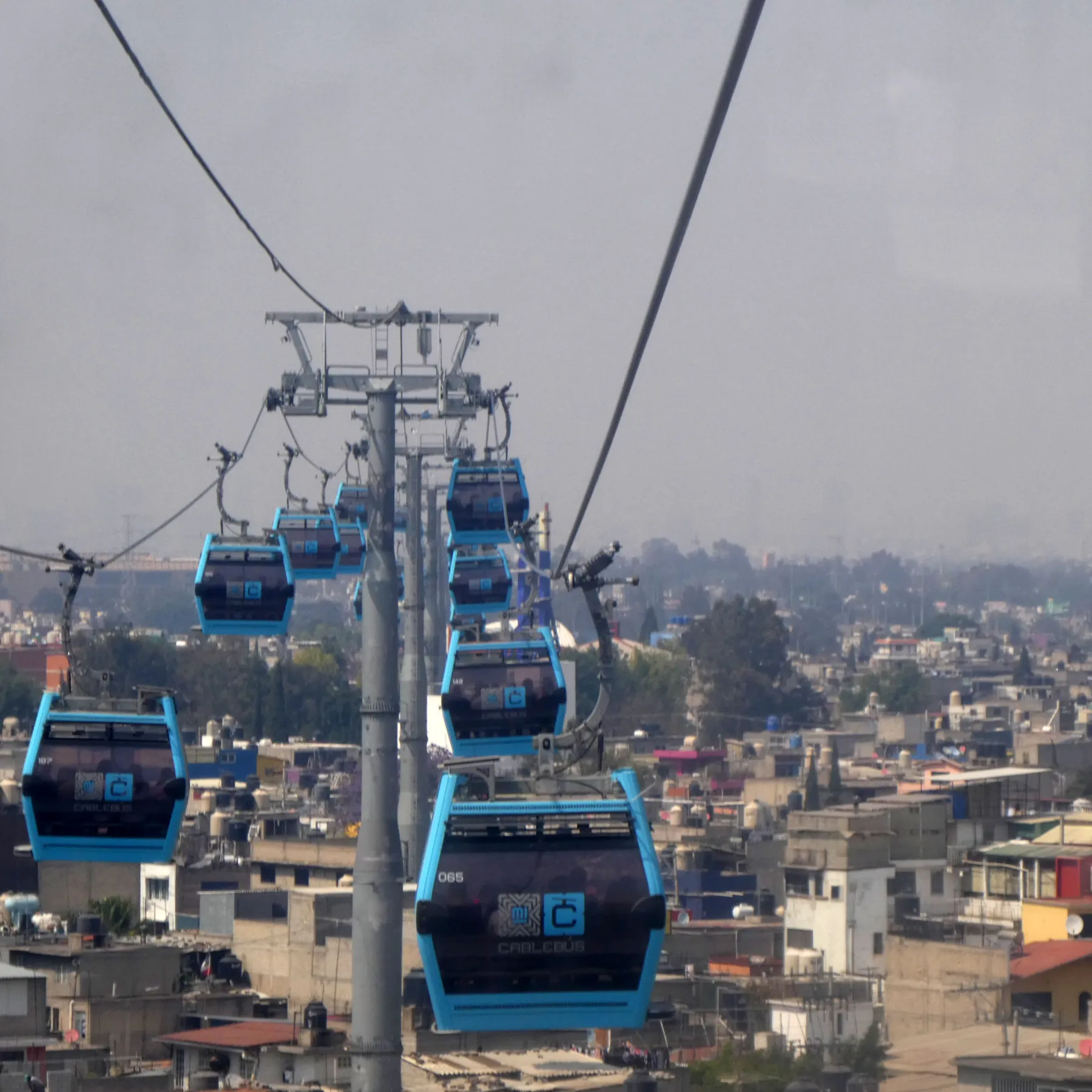 La ligne 1 du Cablebus se présente comme une extension aérienne de la ligne 3 du métro (ligne verte), principal axe nord-sud du réseau souterrain. Elle survole la banlieue relativement aisée de Lindavista jusqu’au quartier de Cuautepec, enserré par les montagnes. Une autre branche monte à Tlalpexco, à près de 2500 mètres d’altitude.