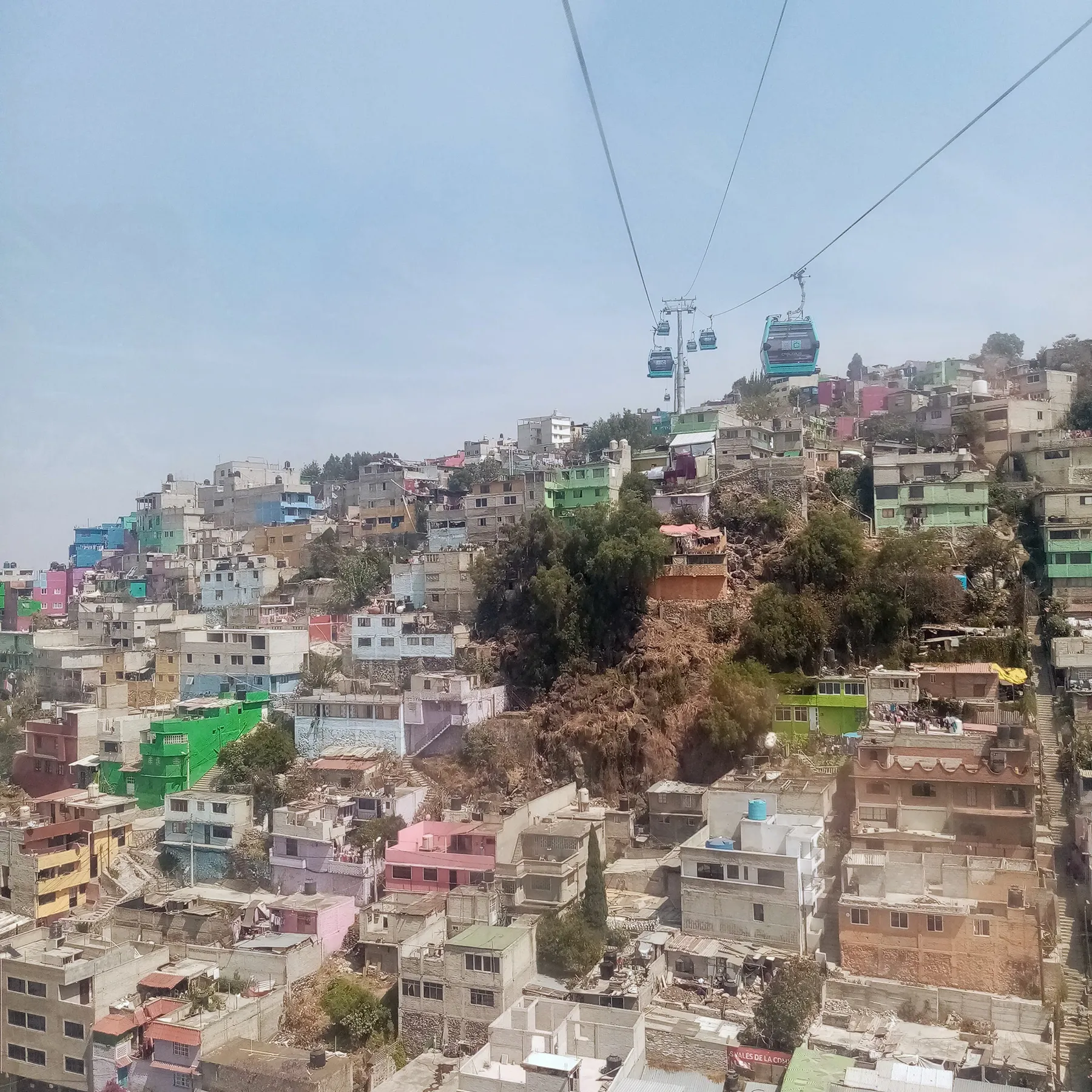 Les télécabines sont situées assez haut pour voir la démesure de la ville, mais assez bas pour entendre les jappements de chiens, le camion du ferrailleur et les cocoricos. Le parcours jette un regard intime sur ces quartiers populaires aux toits recouverts de cordes à linges, de plantes en pot, de matériaux de construction et de citernes d’eau.
